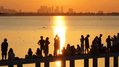 在武汉大学凌波门外看日出日落,是东湖边的浪漫仪式感。